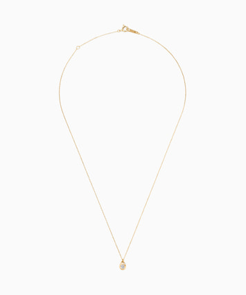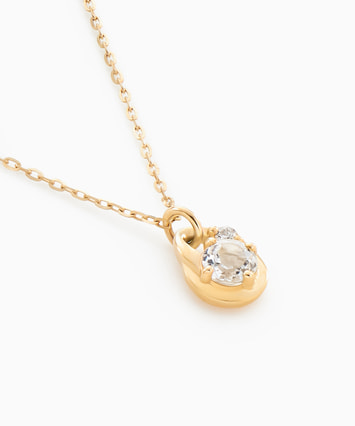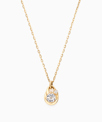 ホワイトトパーズをメインにセッティングし、つややかなゴールドの台座とともに揺れるネックレス。
