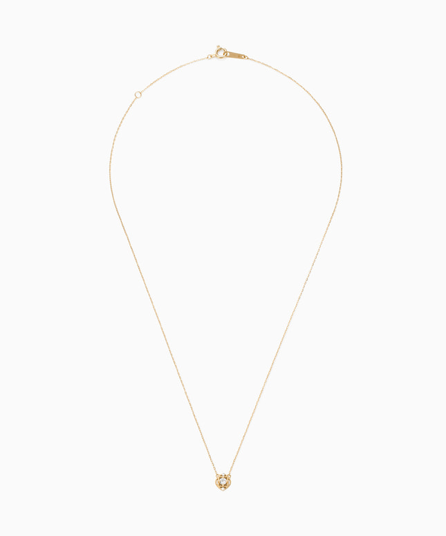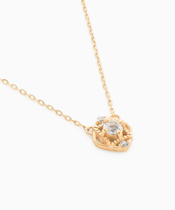 ホワイトトパーズをメインにセッティングし、繊細な細工の施されたゴールドのフレームがクラシカルな印象のネックレス。
