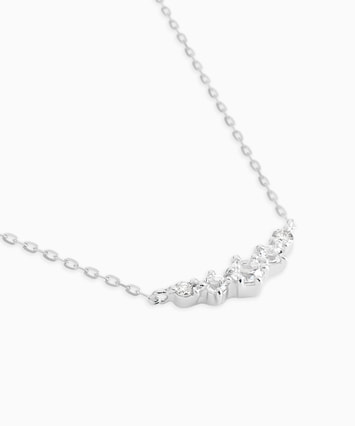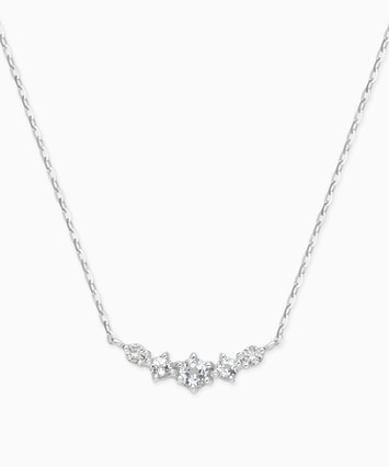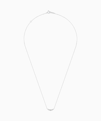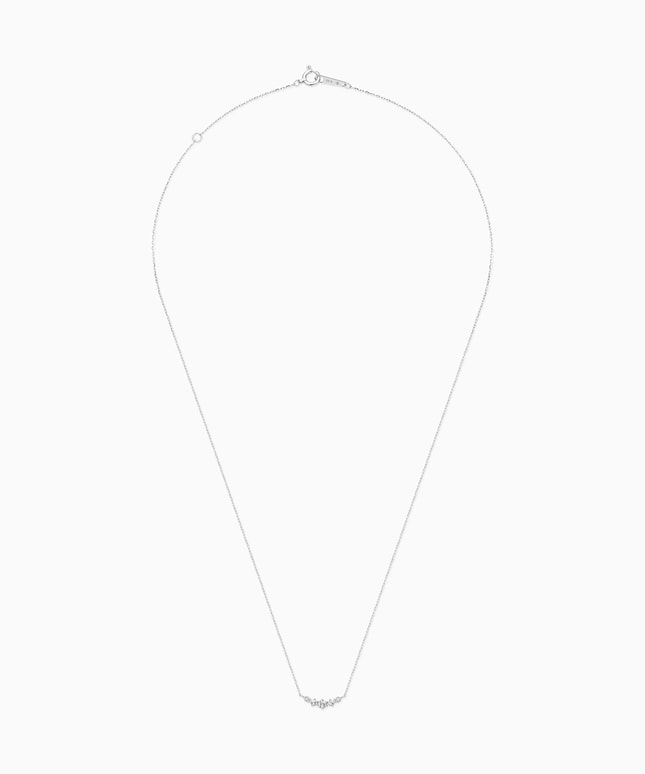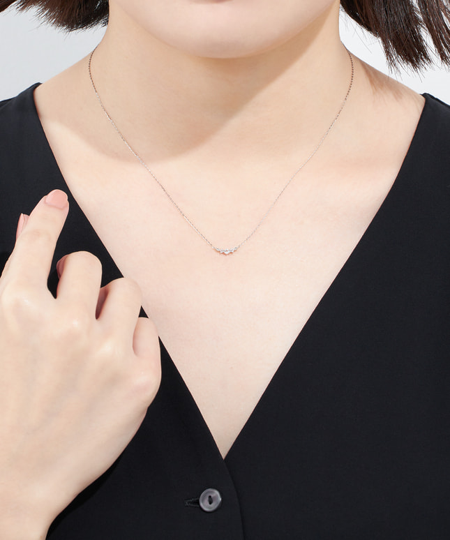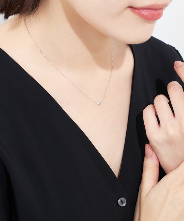 大小3石のホワイトトパーズのサイドに2石のダイヤモンドが並ぶ、バータイプのネックレス。