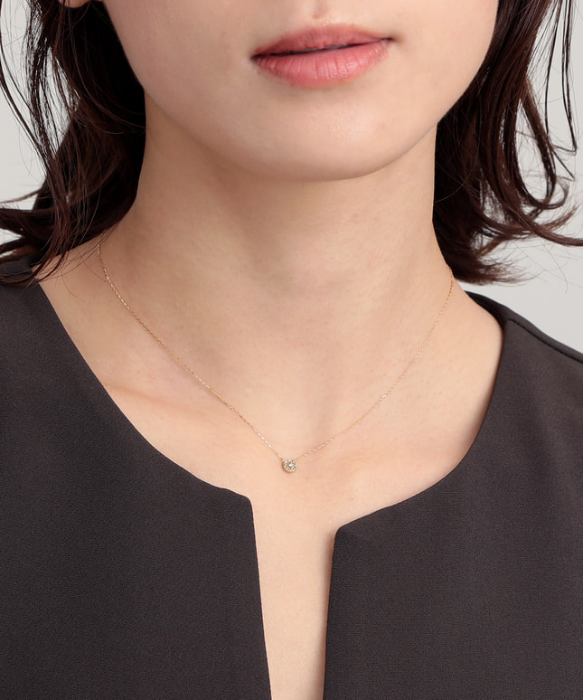 丁寧に仕立てたミニマルなフォルムは、ダイヤモンドのきらめきを際立たせ、デコルテを上品に彩ります。