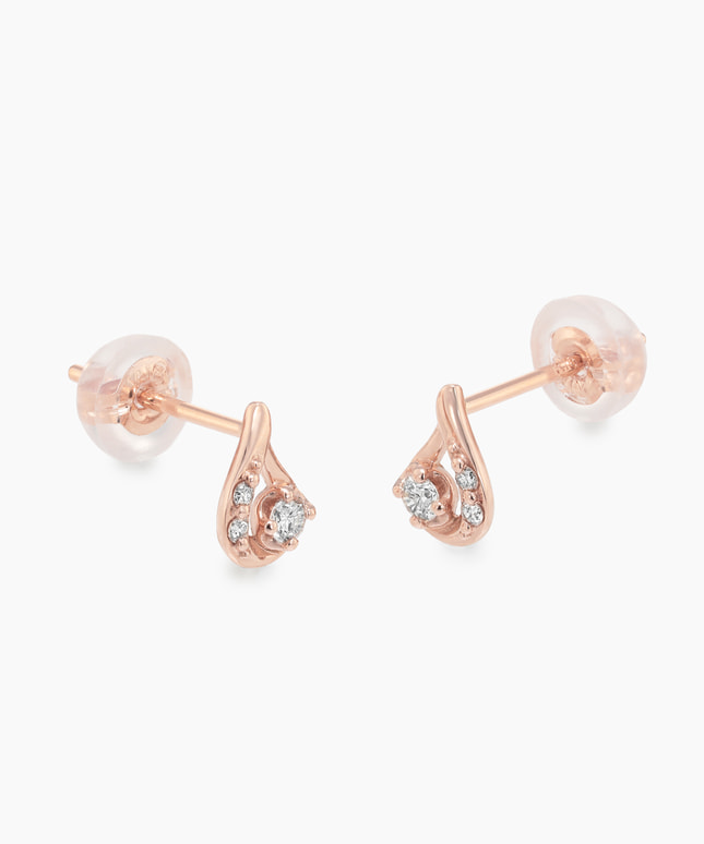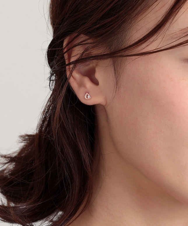シンプルなラインやベーシックなモチーフを上質なK18の素材で仕立てたシリーズ。丁寧に仕立てたミニマルなフォルムは、ダイヤモンドのきらめきを際立たせ、横顔を上品に彩ります。「雫(しずく)」モチーフは、ピンクゴールドのあたたかな輝きとあいまって、可憐で軽やかな印象に。さりげない存在感で、顔まわりに優しいムードを与えてくれます。■同シリーズのアイテムはこちら■様々なタイプのキャッチをご用意しております。ラインナップはこちら※全国のフェスタリア系列店舗にてクリーニングやアフターメンテナンスを承ります。