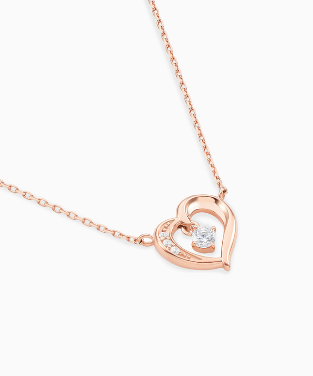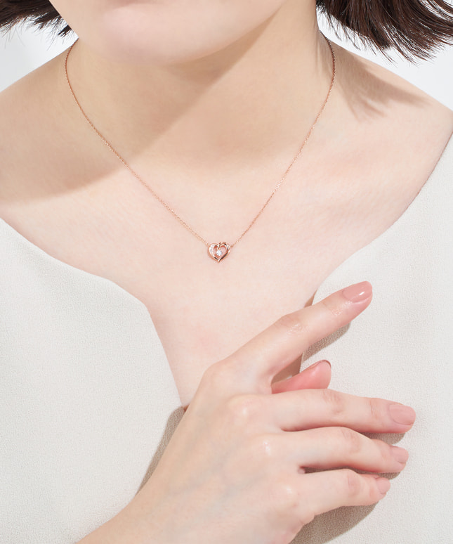 キュートなシルエットのハートモチーフの中で、キュービックジルコニアが揺れるネックレス。通常よりも厚みがあるコーティングのため、滑らかな着け心地。着けるたびに風合いを増しながら、ピンクゴールドの優美な輝きをより長くお楽しみいただけます。■同シリーズのアイテムはこちら■ハートモチーフのアイテムはこちら※変形・変色を防ぐため、水に触れる際や就寝時には外してください。■長さの調節ができるアジャスターはこちら※全国のフェスタリア系列店舗にてクリーニングやアフターメンテナンスを承ります。