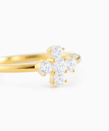 キュービックジルコニアで華やかなフラワーモチーフをかたどったリング。「18金のようなピュアで高品質な輝き」をコンセプトに開発した「シャインゴールドコーティング」仕上げ。通常のコーティングより厚みがあるため、滑らかな付け心地で、耐久性に優れ、ゴールドの優美な輝きをより長くお楽しみいただけます。■同シリーズのアイテムはこちら■フラワーモチーフのアイテムはこちら※着用後は柔らかい布などで汗や皮脂を拭き取っていただくと変色防止につながります。※変形・変色を防ぐため、水に触れる際や就寝時には外してください。※全国のフェスタリア系列店舗にてクリーニングやアフターメンテナンスを承ります。
