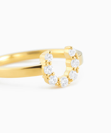幸せを呼び込むと言われる「馬蹄」のモチーフのリング。「18金のようなピュアで高品質な輝き」をコンセプトに開発した「シャインゴールドコーティング」仕上げ。通常のコーティングより厚みがあるため、肌に吸い付くような滑らかな付け心地で、耐久性に優れ、ゴールドの優美な輝きをより長くお楽しみいただけます。■同シリーズのアイテムはこちら■同デザインのネックレスはこちら※着用後は柔らかい布などで汗や皮脂を拭き取っていただくと変色防止につながります。※変形・変色を防ぐため、水に触れる際や就寝時には外してください。※全国のフェスタリア系列店舗にてクリーニングやアフターメンテナンスを承ります。