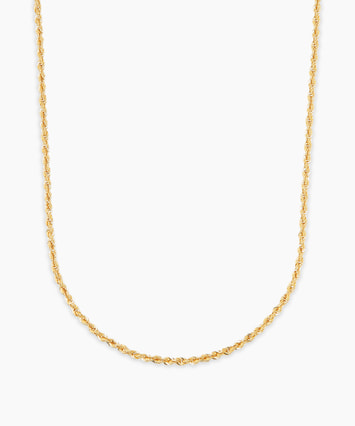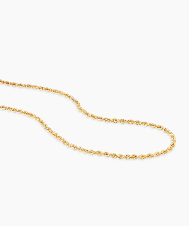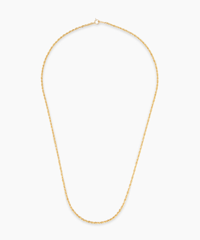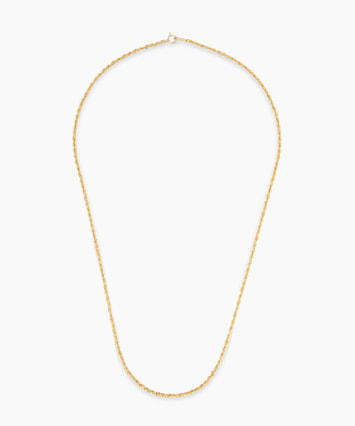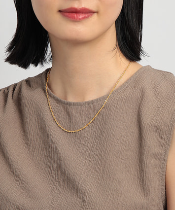 美しい光沢感のある地金チェーンネックレス。ロープのように編み込まれたロープチェーンネックレスは、キラキラと太陽光を反射させ華やかな印象へと導きます。シンプルかつ洗練された地金の輝きは日常に更なる彩りを加え、洋服や季節を問わず活躍してくれます。長さは45cmと普段使いしやすく、トップを着けても楽しむことができます。■長さの調節ができるアジャスターはこちら※全国のフェスタリア系列店舗にてクリーニングやアフターメンテナンスを承ります。