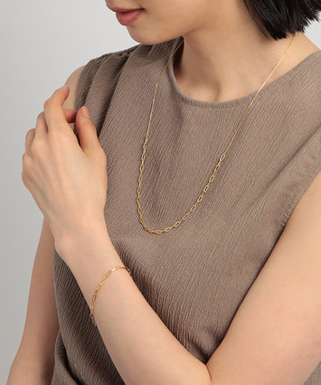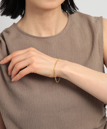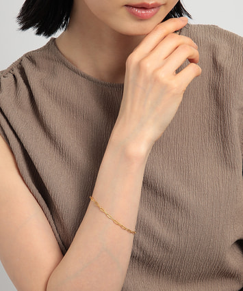 美しい光沢感のある地金チェーンブレスレット。モダンかつスタイリッシュなペーパークリップチェーンで、手元から華やかな輝きをプラスしてくれます。シャツやデニムなどカジュアルな装いにも合わせやすく、普段使いにもピッタリなブレスレットです。上品かつシンプルなデザインのため、時計や他のブレスレットとも相性よく重ね着けを楽しんでいただけます。■長さの調節ができるアジャスターはこちら※全国のフェスタリア系列店舗にてクリーニングやアフターメンテナンスを承ります。