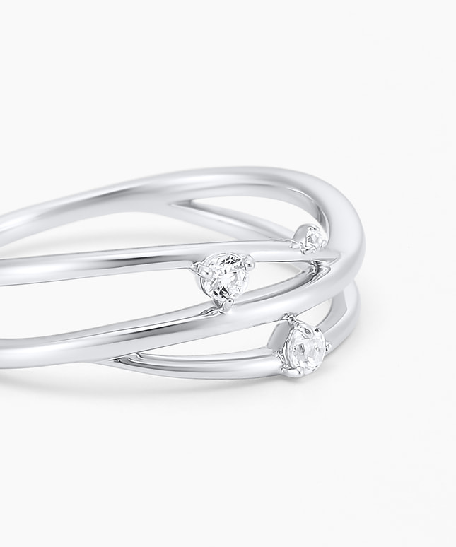 散りばめられたホワイトトパーズと3本の繊細な地金が交じり合い、上品で可憐な印象へと導きます。シンプルなデザインなため、流行に捉われずどんな装いにも楽しんでいただけます。トパーズは11月の誕生石でもあり、ご自身へのご褒美や大切な方へのプレゼントにもおすすめです。
