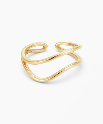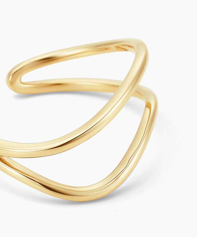 重厚感のある地金の輝きと抜け感のある曲線を描いたフォルムのコントラストを楽しんでいただけるカフリングです。柔らかな曲線は、上品でフェミニンな印象へと導き手元を彩ります。ご自身のコーディネートに合わせて、リングの天地を変えることで手元の雰囲気が変わり、2WAY仕様で楽しんでいただけます。