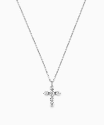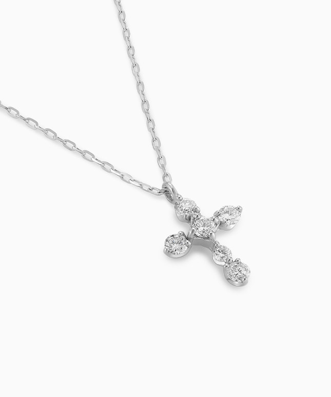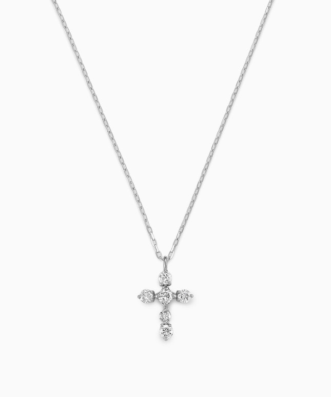 時代や流行に左右されないシンプルな美しさをコンセプトにした、ダイヤモンドベーシックシリーズ。日常から特別な日まで、幅広いシーンで輝きを添えるネックレスです。■デザインについて定番人気のクロスデザインは、「魔除け」としても愛され、お守りとしても身に着けていただけます。プラチナの高品位な地金に、一つ一つのダイヤモンドが繊細に輝きを放ち、自然な美しさを実現しました。飾りすぎないベーシックなデザインは、日常にさりげなく寄り添い、どんなシーンでも活躍してくれます。■スタッフのおすすめポイント・細部まで丁寧に作り込まれており、肌の上でダイヤモンドだけが浮かび上がるような上品な輝きを楽しめます。・小ぶりながらも印象的で、日常使いから特別な日まで長く身につけたくなるデザインです。■カラー・素材の展開イエローゴールド、プラチナの2色展開。同シリーズのアイテムはこちら■長さの調節ができるアジャスターはこちら※全国のフェスタリア系列店舗にてクリーニングやアフターメンテナンスを承ります。