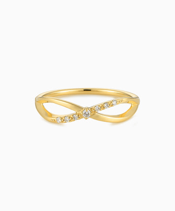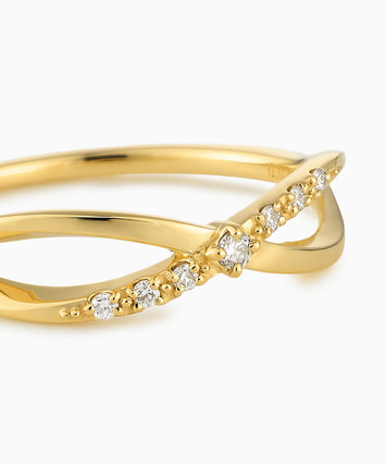 優雅に交差する2本のラインが、やわらかな曲線を描くデザインリング。