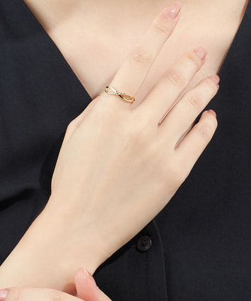 ・緩やかに交差するデザインが縦のラインを強調し、指先をほっそり長く見せてくれます。
