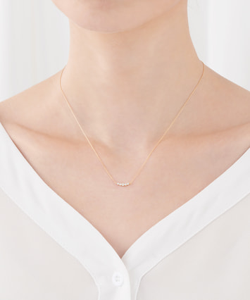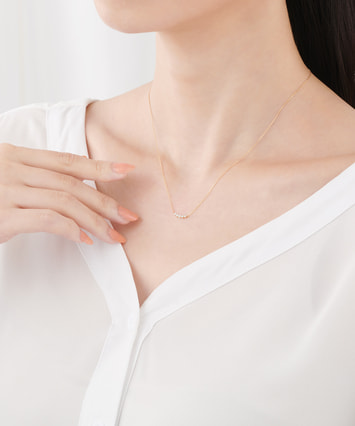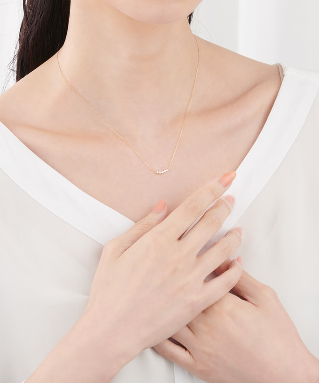 ダイアモンドの光だけが輝くように小さな爪でセッティングしたネックレスは、デコルテを美しく彩ります。
