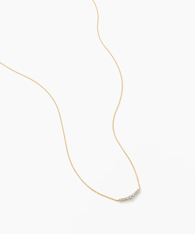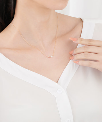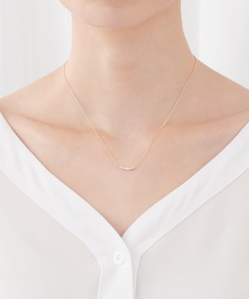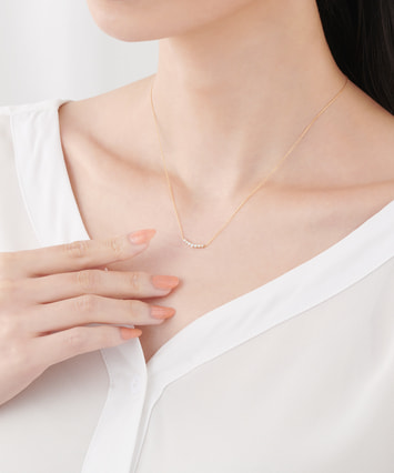ダイアモンドの光だけが輝くように小さな爪でセッティングしたネックレスは、デコルテを美しく彩ります。