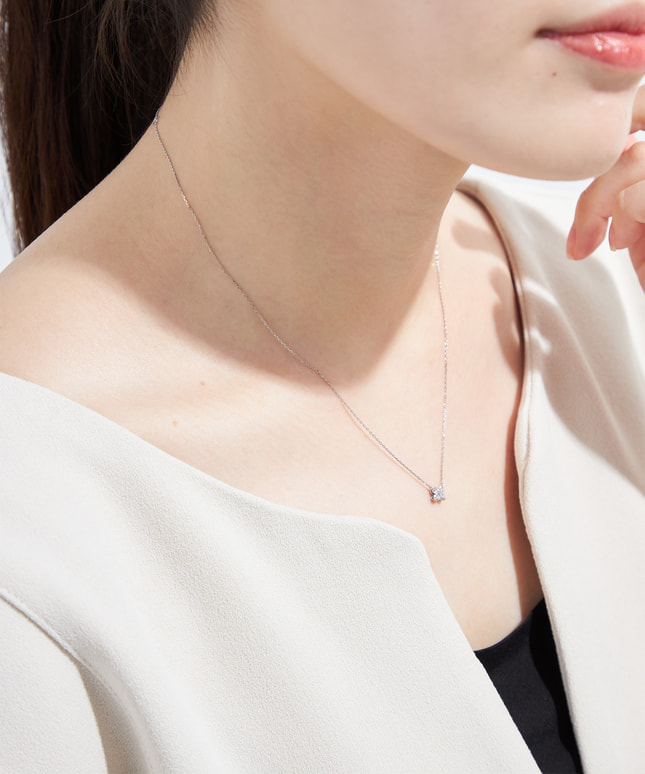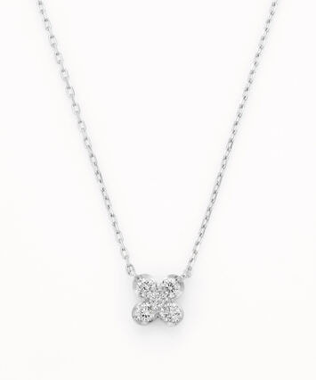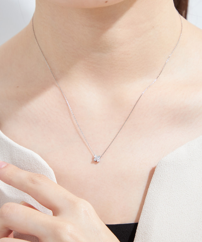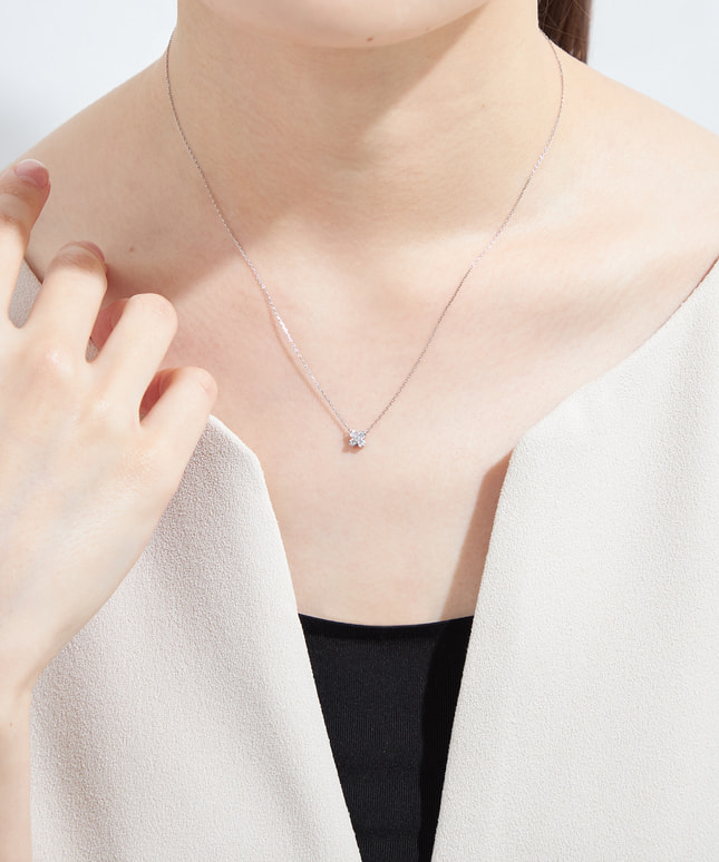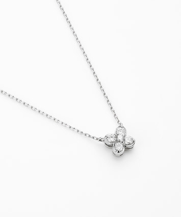 花弁が4枚の花のようにセッティングしたダイヤモンドがきらめくネックレス。