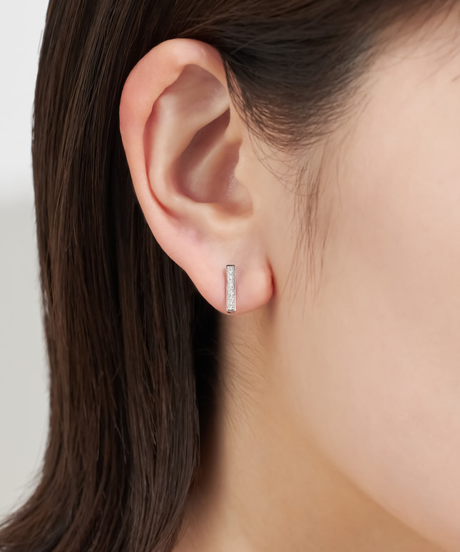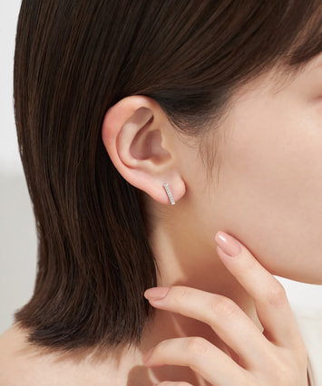 Diamante ディアマンテイタリア語の「ダイヤモンド」の綴り “Diamante” には、「愛する人」を意味する “amante” の言葉が隠れています。そんなロマンティックな名が付けられたフェスタリアの〈Diamante〉は、愛と輝きに満ちたダイヤモンドジュエリーのシリーズです。すっきりとした直線が目を引くピアス。クールでモダンな雰囲気を漂わせつつ、縦ラインが強調されるので、小顔効果も期待できます。シンプルでありながらも存在感を放つプラチナとダイヤモンドの輝きはシーンを選ばず、装いを上品にそして華やかにクラスアップします。■様々なタイプのキャッチをご用意しております。ラインナップはこちら※全国のフェスタリア系列店舗にてクリーニングやアフターメンテナンスを承ります。