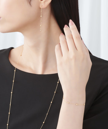 カッティングや流れるラインの美しさにこだわり抜いた地金チェーンやパーツを組み合わせたメタルシリーズ 繊細なK18YGチェーンがさりげない華やかさをプラスするブレスレット。 上質な素材をまとうことでラグジュアリーな雰囲気を演出します。シンプルだからこそ他のアイテムとコーディネートしやすいこともポイントです。■同シリーズのアイテムはこちら■長さの調節ができるアジャスターはこちら※全国のフェスタリア系列店舗にてクリーニングやアフターメンテナンスを承ります。#地金ブレスレット #地金ジュエリー #チェーンジュエリー #ブレスレット K18