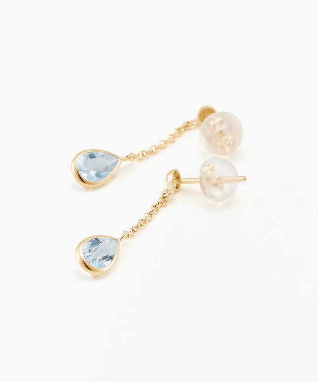 しずく型のカラーストーンが上品に揺れるシンプルで使いやすいピアス。洗練されたデザインを、お出かけの際に合わせて楽しんでいただけるよう取り揃えました。透明感のあるブルーが魅力のアクアマリンとイエローゴールドの組み合わせが、横顔にエレガントで華やかな印象を与えてくれるアイテムです。※天然石を使用しているため、ストーンの色合いは一つ一つ異なる場合がございます。■様々なタイプのキャッチをご用意しております。ラインナップはこちら※全国のフェスタリア系列店舗にてクリーニングやアフターメンテナンスを承ります。