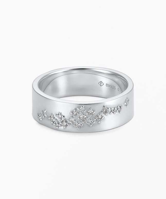装飾を抑えたデザインだからこそ、シルバーの質感とダイヤモンドのきらめきが引き立ち、日常の装いにさりげない品格を添えてくれます。