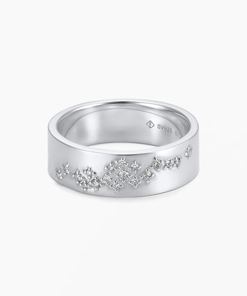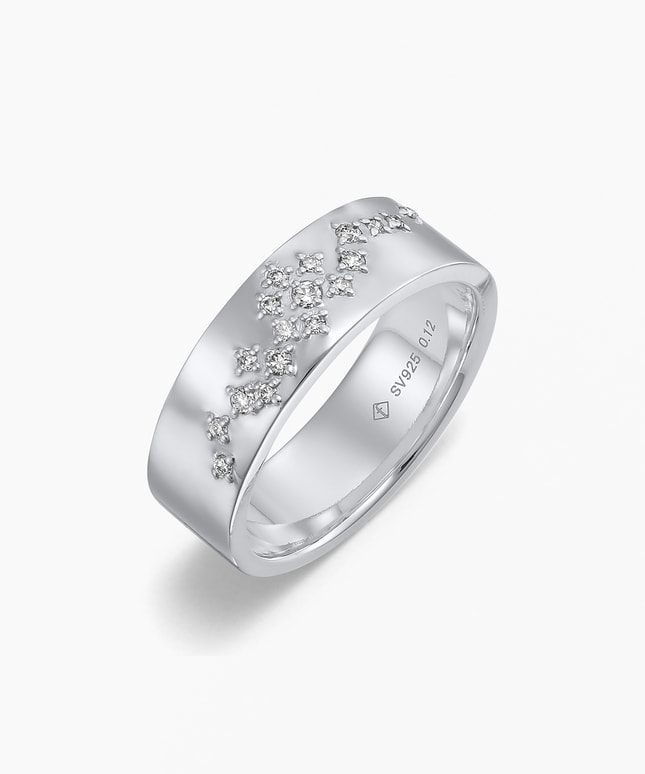 程よい幅感のリングアームに、星の瞬きのようにダイヤモンドをリズミカルにセッティングしました。