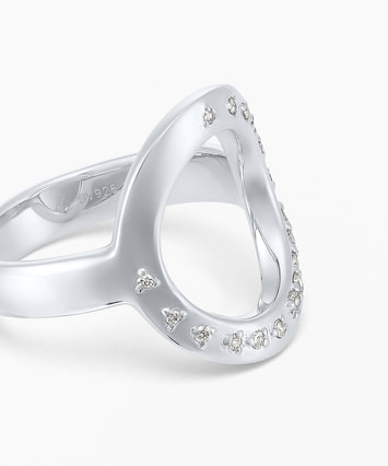無駄を削ぎ落とした潔さとシルバーの無機質な美しさを追求したコレクション。■デザインについてなめらかな曲線で描かれたサークルモチーフが印象的なシルバーリング。艶やかな地金の表情に、ランダムにあしらったダイヤモンドがさりげないきらめきを添えています。程よくボリュームのあるフォルムながら、抜け感のあるデザインなので重たくなりすぎず、指元に自然となじむのがポイント。1本で存在感を楽しむのはもちろん、他のリングとの重ね着けもしやすく、コーディネートの幅が広がります。サイズ展開は11号、13号、15号のみ。サイズ直し不可の商品のためご注意ください。■スタッフのおすすめポイント・程よいボリューム感がありながら、中央に抜けのあるデザインなので重たく見えません。・シンプルなコーデに合わせるだけで、手元がぐっと今っぽい印象に。・ダイヤモンドがランダムにセッティングされているので、角度によって表情が変わるのも魅力です。■カラー・素材の展開■同シリーズのアイテムはこちら■サイズガイドはこちら※全国のフェスタリア系列店舗にてクリーニングやアフターメンテナンスを承ります。