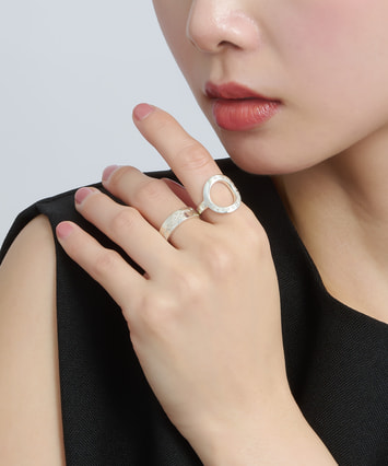 1本で存在感を楽しむのはもちろん、他のリングとの重ね着けもしやすく、コーディネートの幅が広がります。