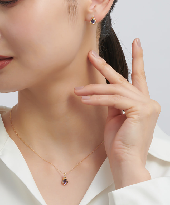 特別な記念日やお守りとして身に着けたい誕生石ジュエリー。石を包み込むように縁取られたゴールドのアウトラインはフォトフレームをイメージし、セッティングする石によってフォルムを変えデザインしたこだわりのシリーズ。青みがかった上品な紫色が美しいアイオライトは、知的でノーブルな雰囲気をプラスします。自分自身へのご褒美や大切な人への贈り物としてもおすすめです。【3月の新誕生石】アイオライト古くから言い伝えにも残るように、バイキングが航海の際に羅針盤代わりに使用していたと言われる宝石。その伝承からか、アイオライトは「人生においての道しるべ」という意味を持つとも言われます。いつも寄り添ってくれる「お守りジュエリー」にふさわしい逸品です。※天然石を使用しているため、ストーンの色や柄は一つ一つ異なる場合がございます。■同シリーズのアイテムはこちら■様々なタイプのキャッチをご用意しております。ラインナップはこちら※全国のフェスタリア系列店舗にてクリーニングやアフターメンテナンスを承ります。