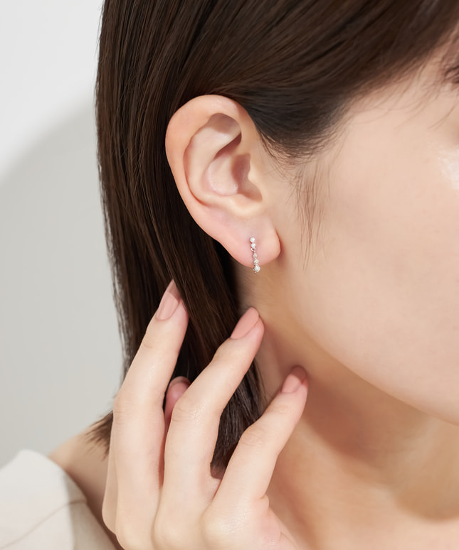 Diamante ディアマンテイタリア語の「ダイヤモンド」の綴り “Diamante” には、「愛する人」を意味する “amante” の言葉が隠れています。そんなロマンティックな名が付けられたフェスタリアの〈Diamante〉は、愛と輝きに満ちたダイヤモンドジュエリーのシリーズです。ダイヤモンドの輝きを際立たせるセッティングにこだわったピアス。ダイヤモンドが2石と3石のパーツにわかれており、さり気なく揺れて繊細にきらめきます。シンプルでありながらも存在感を放つプラチナとダイヤモンドの輝きは、装いを上品にそして華やかにクラスアップします。■様々なタイプのキャッチをご用意しております。ラインナップはこちら※全国のフェスタリア系列店舗にてクリーニングやアフターメンテナンスを承ります。
