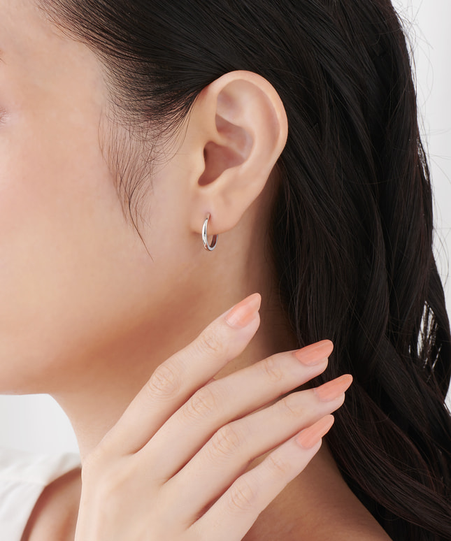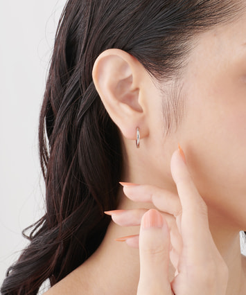 中折れタイプのフープピアス。耳の後ろにポストが出ないデザインのため引っ掛かりにくく、洗練されたシルエットが魅力。ポスト部分はK18素材なのも嬉しいポイントです。ピアスチャームをプラスしたアレンジもしやすく、オンオフ問わず愛用できるアイテムです。■同シリーズのアイテムはこちら■フープピアスのラインナップはこちら■様々なタイプのキャッチをご用意しております。ラインナップはこちら※全国のフェスタリア系列店舗にてクリーニングやアフターメンテナンスを承ります。#中折れピアス #フープピアス #地金ジュエリー #ピアス ホワイトゴールド