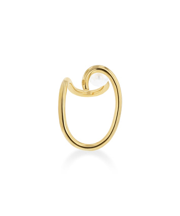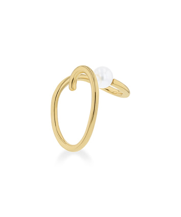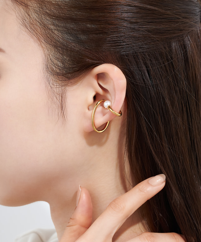 程よいサイズ感と洗練されたシンプルなデザイン。普段の装いに華やかさをプラスするイヤーカフシリーズです。流れるようなしっかりしたラインが耳元に存在感を、まろやかなパールが女性らしさを演出します。角を落とした丸みのあるデザインなので、長時間着けても痛くなりにくいです。2つのイヤーカフを重ね付けしたような仕上がりは、ひとつでトレンドライクな印象が魅力です。