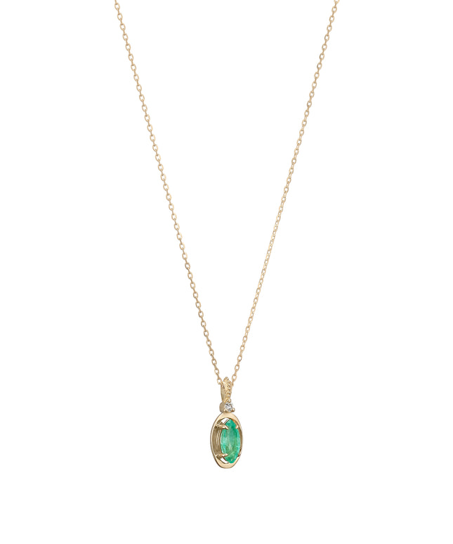 特別な記念日やお守りとして身に着けたい誕生石ジュエリー。石を包み込むように縁取られたゴールドのアウトラインはフォトフレームをイメージし、セッティングする石によってフォルムを変えデザインしたこだわりのシリーズ。艶やかなゴールドと爽やかな新緑のようなエメラルドのコントラストが上品な雰囲気をプラスします。大切な人への贈り物としてもおすすめのネックレスです。■同シリーズのアイテムはこちら■長さの調節ができるアジャスターはこちら※天然石を使用しているため、ストーンの色や内包物の度合いが一つ一つ異なる場合がございます。※全国のフェスタリア系列店舗にてクリーニングやアフターメンテナンスを承ります。