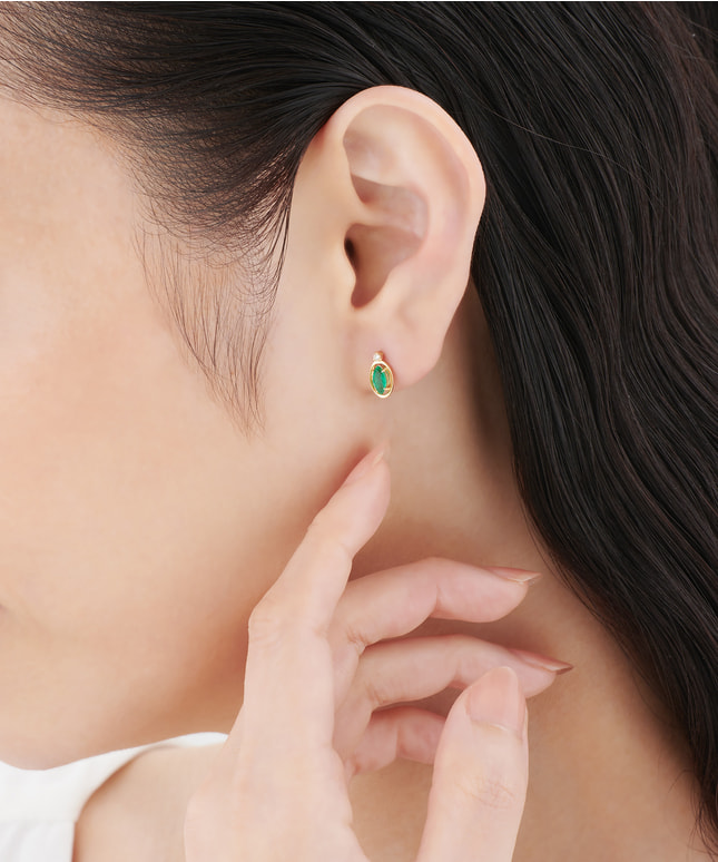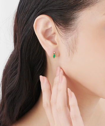 特別な記念日やお守りとして身に着けたい誕生石ジュエリー。石を包み込むように縁取られたゴールドのアウトラインはフォトフレームをイメージし、セッティングする石によってフォルムを変えデザインしたこだわりのシリーズ。艶やかなゴールドと爽やかな新緑のようなエメラルドのコントラストが上品な雰囲気をプラスします。大切な人への贈り物としてもおすすめのピアスです。■同シリーズのアイテムはこちら※天然石を使用しているため、ストーンの色や内包物の度合いが一つ一つ異なる場合がございます。■様々なタイプのキャッチをご用意しております。ラインナップはこちら※全国のフェスタリア系列店舗にてクリーニングやアフターメンテナンスを承ります。