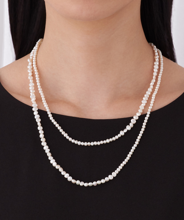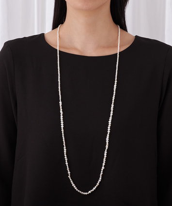 不揃いな形がいくとおりもの表情を魅せてくれる淡水パールのロングネックレス。約100cmの長さは存在感があり、タートルネックやシャツにさらっとあわせるだけでコーディネートに華やかさをプラスします。ロングパールネックレスは、忙しい朝でも頭からかぶるだけでスタイリングが決まる便利さが魅力。ロングネックレスとして着けるのはもちろん、2連にしたり、他のネックレスと重ね着けしたり、さらには腕に巻いてブレスレットにしたりと、1本持っているとコーディネートの幅が広がるアイテムです。※パールの色合いや形状、大きさには個体差がございます。※パールジュエリーをご使用の後は、柔らかい布で優しく汚れをふき取り、高温多湿を避けて保管してください。■長さの調節ができるアジャスターはこちら※全国のフェスタリア系列店舗にてクリーニングやアフターメンテナンスを承ります。