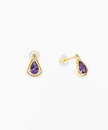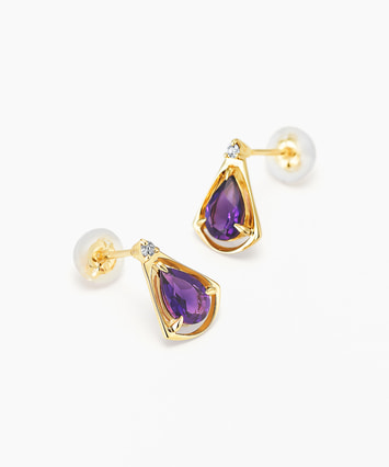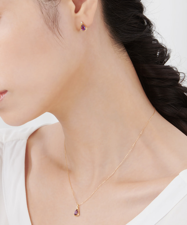特別な記念日やお守りとして身に着けたい誕生石ジュエリー。石を包み込むように縁取られたゴールドのアウトラインはフォトフレームをイメージし、セッティングする石によってフォルムを変えデザインしたこだわりのシリーズ。味わい深い紫色が印象的なアメシストは、顔まわりに取り入れるだけでエレガントでニュアンスのある雰囲気に。シンプルながらも個性が引き立つゴールドのラインが、凛とした美しさを演出します。■同シリーズのアイテムはこちら※天然石を使用しているため、ストーンの色や柄は一つ一つ異なる場合がございます。■様々なタイプのキャッチをご用意しております。ラインナップはこちら※全国のフェスタリア系列店舗にてクリーニングやアフターメンテナンスを承ります。