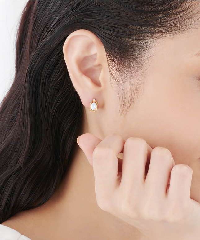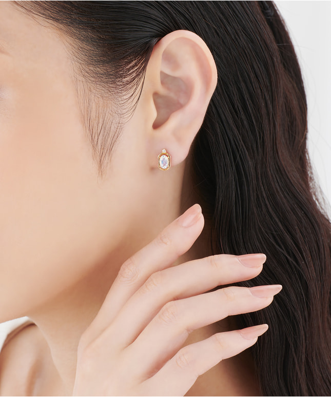 特別な記念日やお守りとして身に着けたい誕生石ジュエリー。石を包み込むように縁取られたゴールドのアウトラインはフォトフレームをイメージし、セッティングする石によってフォルムを変えデザインしたこだわりのシリーズ。優しいニュアンスカラーが特徴のムーンストーンをゴールドのラインで縁取り、凛とした美しさを演出。大切な人への贈り物としてもおすすめのピアスです。■同シリーズのアイテムはこちら※天然石を使用しているため、ストーンの色や柄は一つ一つ異なる場合がございます。■様々なタイプのキャッチをご用意しております。ラインナップはこちら※全国のフェスタリア系列店舗にてクリーニングやアフターメンテナンスを承ります。