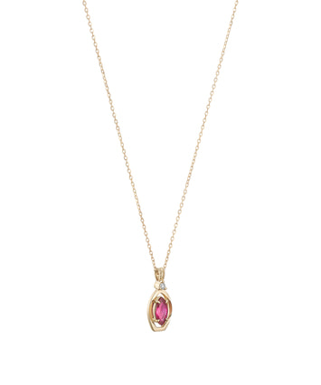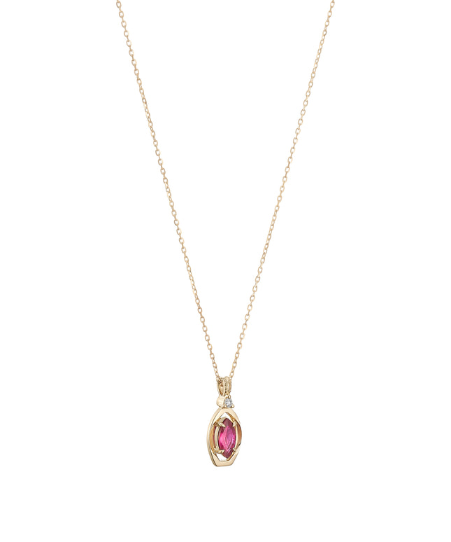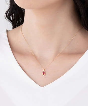 特別な記念日やお守りとして身に着けたい誕生石ジュエリー。石を包み込むように縁取られたゴールドのアウトラインはフォトフレームをイメージし、セッティングする石によってフォルムを変えデザインしたこだわりのシリーズ。鮮やかな赤色が印象的なルビーをゴールドのラインで縁取り、凛とした美しさを演出。きらめくダイヤモンドを添え、デコルテを美しく彩ります。大切な人への贈り物としてもおすすめのネックレスです。■同シリーズのアイテムはこちら■長さの調節ができるアジャスターはこちら※天然石を使用しているため、ストーンの色や柄は一つ一つ異なる場合がございます。※全国のフェスタリア系列店舗にてクリーニングやアフターメンテナンスを承ります。