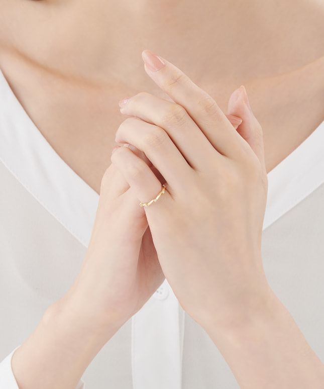 Espoir エスポワールフランス語で「希望」を意味するエスポワール。願いを叶えるとされるピンキーリングを身に着け、輝かしい希望を手繰り寄せてほしい、という想いが込められています。自分ならではの願いを込めると共に手元周りのコーディネートを気軽に演出するピンキーリングコレクション。しっかりとしたダイヤ感と安心感のある地金のボリュームが特徴的な仕上がりです。大人っぽい落着きのあるデザインで自分ならではのコーディネートをお楽しみ下さい。