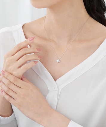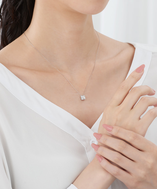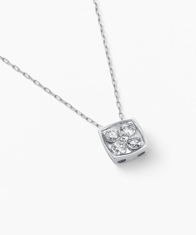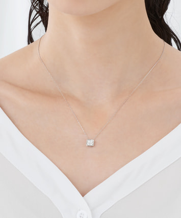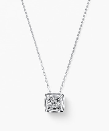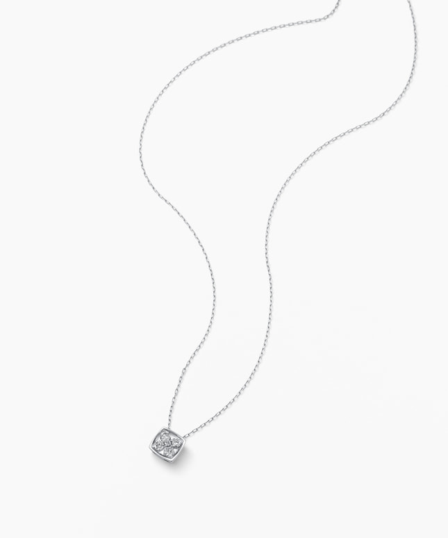 落ち着いたプラチナに上質なダイヤモンドがきらめくネックレスは、大切なアニバーサリージュエリーにふさわしい一品です。