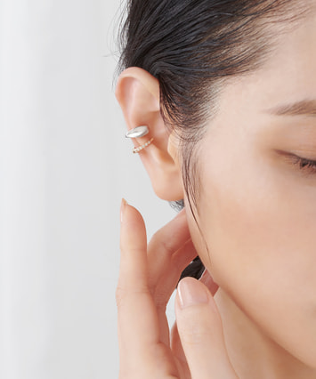 あえて色の違うイヤーカフやピアスと重ねることで、幅広いコーディネートが楽しめます。