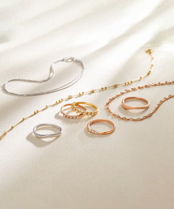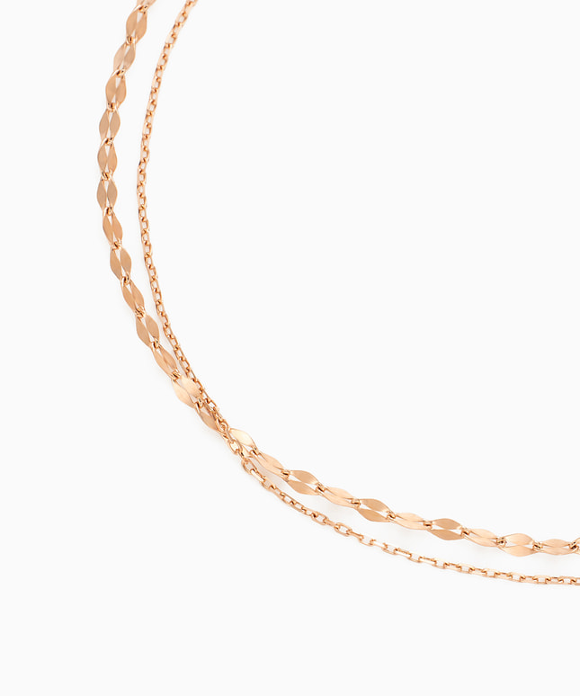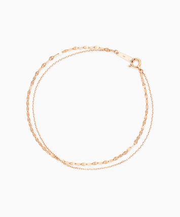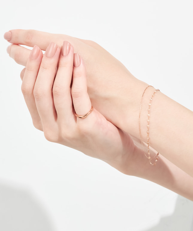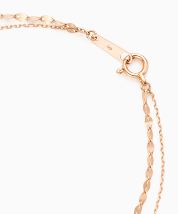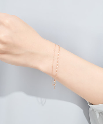 シンプルながらラインの美しさにこだわり抜いた地金チェーンのメタルシリーズ。異なる2種類のチェーンが仕草にあわせて上質なきらめきを放ち、シンプルながらもさりげない存在感を感じさせます。装いやシーンを選ばないデザインのため、オンオフ問わず身に着けやすいのも嬉しいポイント。1本で、重ね着けしているようにも見えるデザインです。■同シリーズのアイテムはこちら■長さの調節ができるアジャスターはこちら※全国のフェスタリア系列店舗にてクリーニングやアフターメンテナンスを承ります。#地金ブレスレット #地金ジュエリー #チェーンジュエリー #ブレスレット K18 #ギフトにおすすめ