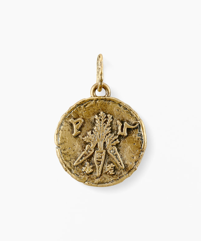 メゾンブランドのデザインやプロデュースを手掛け、パリを拠点に活躍するマルチアーティスト河原シンスケ氏とのコラボレートコレクション。古代ローマを着想源に生まれたデザインに、河原氏の作品を代表するウサギを主人公にした創作の物語が込められています。まるでコインから飛び出でてきたような小さなウサギやニンジンがモチーフになったジュエリー。コインに刻まれた絵柄をそのまま型抜きしているため、裏面のデザインも魅力。<petit usagi>の世界観とフェスタリアのクラフトマンシップがぎゅっと詰め込まれたペンダントトップです。■petit usagi SHINSUKE KAWAHARA for festariaについてはこちら※こちらの商品は専用の巾着、ショッパーをお付けしてお届けいたします。注文画面でギフトラッピングを選択いただいてもリボンは付属されませんので予めご了承ください。※古美仕上げを施しているため、1点1点風合いや仕上げ、色の濃淡が異なります。アイテムがもつ唯一無二の個性との出会いをお楽しみください。※古美仕上げのため、稀に白いお洋服に加工の色味がつく場合がございます。※時間の経過により黒ずみが気になる際は、シルバー用のクロスで軽く表面を磨いていただくのがおすすめです。※全国のフェスタリア系列店舗にてクリーニングやアフターメンテナンスを承ります。