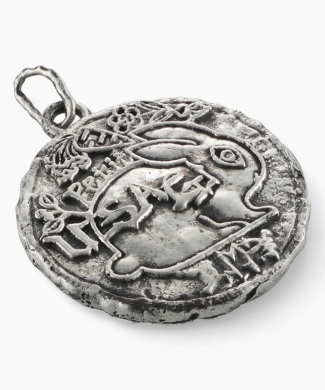 メゾンブランドのデザインやプロデュースを手掛け、パリを拠点に活躍するマルチアーティスト河原シンスケ氏とのコラボレートコレクション。古代ローマを着想源に生まれたデザインに、河原氏の作品を代表するウサギを主人公にした創作の物語が込められています。まるでコインから飛び出でてきたような小さなウサギやニンジンがモチーフになったジュエリー。コインに刻まれた絵柄をそのまま型抜きしているため、裏面のデザインも魅力。<petit usagi>の世界観とフェスタリアのクラフトマンシップがぎゅっと詰め込まれたチャームです。■petit usagi SHINSUKE KAWAHARA for festariaについてはこちら※こちらの商品は専用の巾着、ショッパーをお付けしてお届けいたします。注文画面でギフトラッピングを選択いただいてもリボンは付属されませんので予めご了承ください。※古美仕上げを施しているため、1点1点風合いや仕上げ、色の濃淡が異なります。アイテムがもつ唯一無二の個性との出会いをお楽しみください。※古美仕上げのため、稀に白いお洋服に加工の色味がつく場合がございます。※時間の経過により黒ずみが気になる際は、シルバー用のクロスで軽く表面を磨いていただくのがおすすめです。※全国のフェスタリア系列店舗にてクリーニングやアフターメンテナンスを承ります。