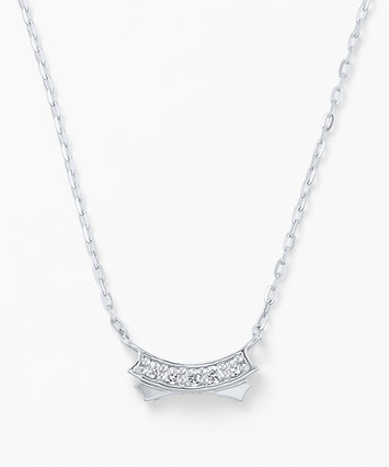 恋人や友人、家族との絆や想いを結ぶリボンモチーフ。しなやかに弧を描くリボンが重なり合い、大切なもの、ひとを繋ぐさまを抽象的に表現しています。細やかに敷き詰められたダイヤモンドが、デコルテに上品な輝きを与えてくれます。■ラッキーモチーフアイテムのラインナップはこちら■長さの調節ができるアジャスターはこちら※全国のフェスタリア系列店舗にてクリーニングやアフターメンテナンスを承ります。