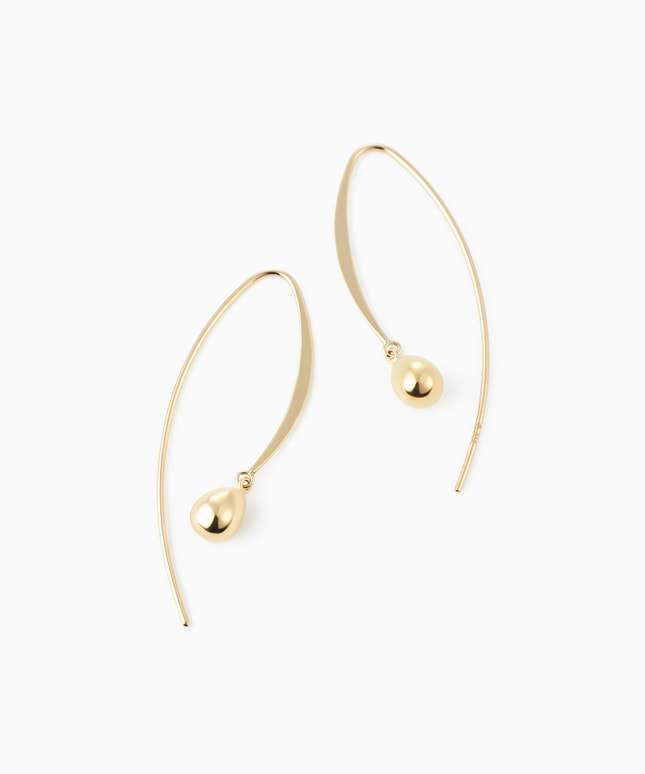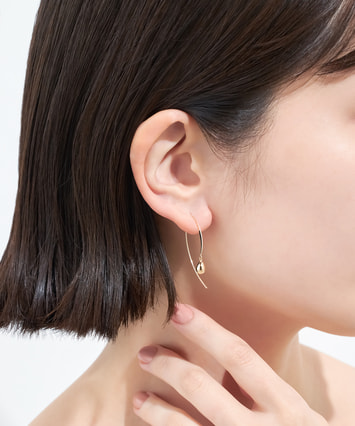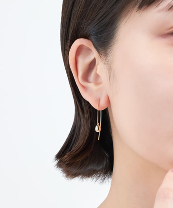 モダンなテイストのピアス。仕草にあわせてイエローゴールドのボールパーツが揺れ、顔まわりにさりげない輝きとニュアンスをプラス。立体的なフォルムはどの角度から見ても美しい表情を生み出します。長さのあるポストで、着脱しやすいのも嬉しいポイントです。■様々なタイプのキャッチをご用意しております。ラインナップはこちら※全国のフェスタリア系列店舗にてクリーニングやアフターメンテナンスを承ります。