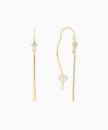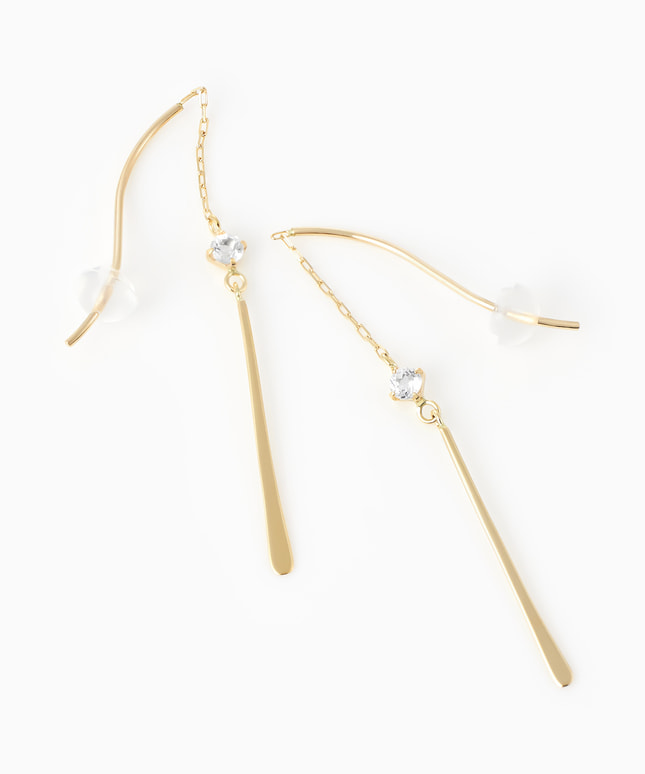 シンプルさの中に、透明感のあるホワイトトパーズとS字のポストが一さじの上品さと気品を与えてくれます。