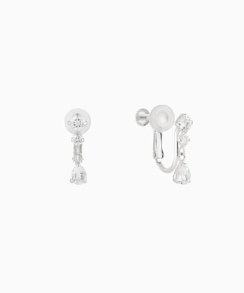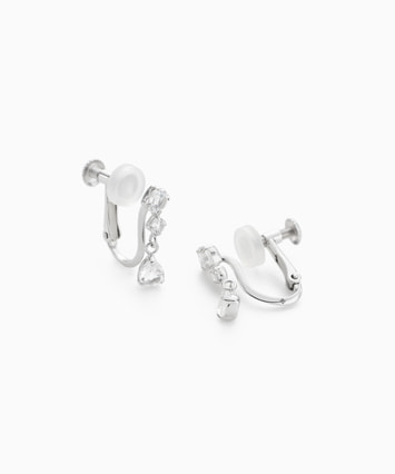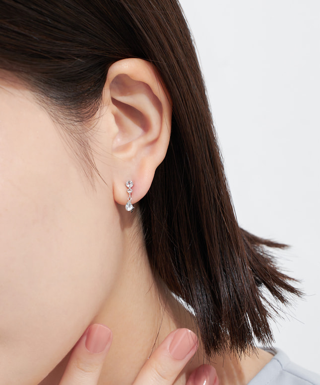 耳元をさりげなく軽やかに演出してくれるイヤリング。瑞々しい輝きを放つホワイトトパーズをあしらった、華やかな透明感が魅力です。3石のホワイトトパーズがセッティングされた正面から金具が目立ちにくいデザインで、雫型のストーンが仕草にあわせて揺れる度、横顔に華やぎをプラスします。ネジバネ式の金具なので、ご自身で着け心地の微調整が可能。普段のコーディネートを格上げしてくれるだけでなく、フォーマルなシーンにも活躍するアイテムです。■イヤリングのアイテム一覧はこちら※全国のフェスタリア系列店舗にてクリーニングやアフターメンテナンスを承ります。