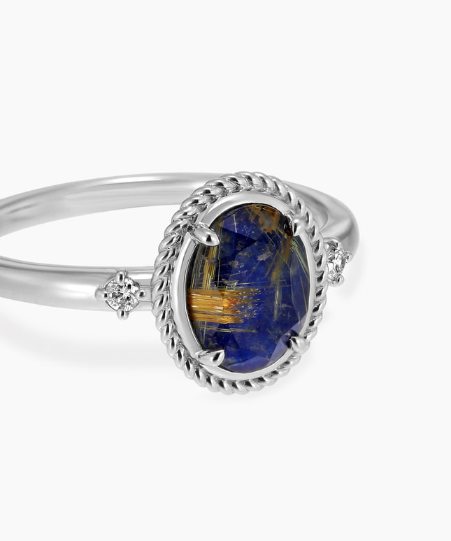ラピスラズリとルチルクォーツを組み合わせたダブレットのリング。