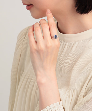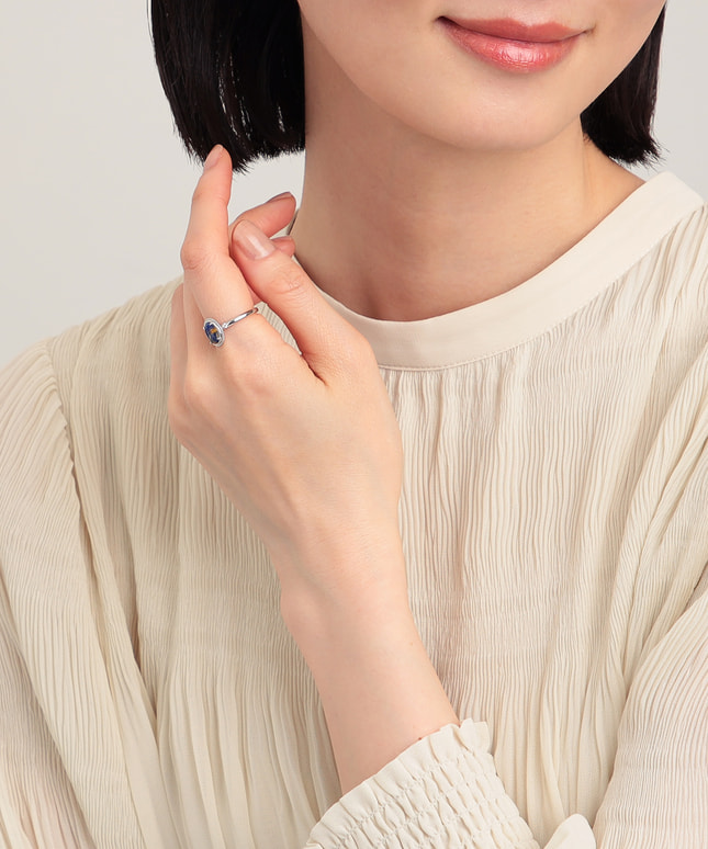 「フェルメール・ブルー」の原料としても知られるラピスラズリのブルーにルチルクォーツの黄金色の内包物が映え、奥行きのあるニュアンスをプラス。