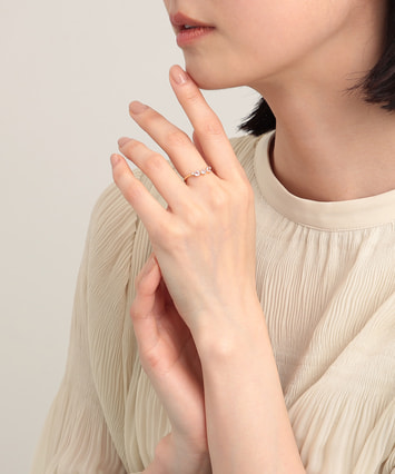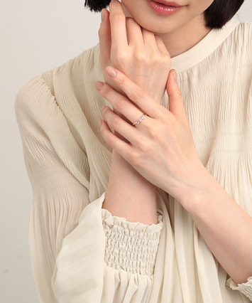 柔らかなV字ラインは指を長く見せる効果があり、センターにボリュームのあるリングとの重ね着けにもぴったりです。