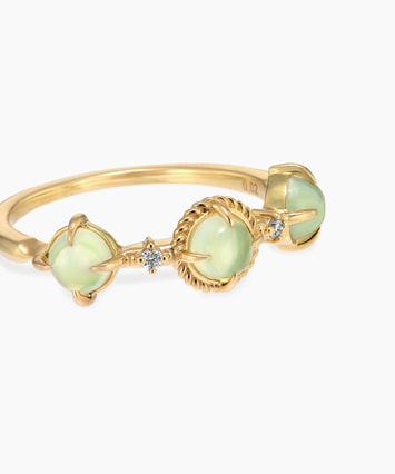 新緑にきらめくしずくのような潤いに満ちたプレーナイトは、「健康的な美しさ」という石言葉を持ち、身に着ける人の心身を穏やかにしてくれそうな爽やかなグリーンが魅力です。