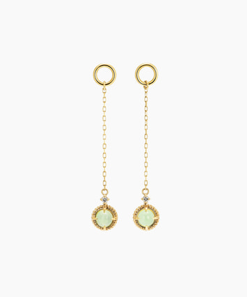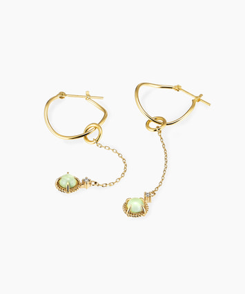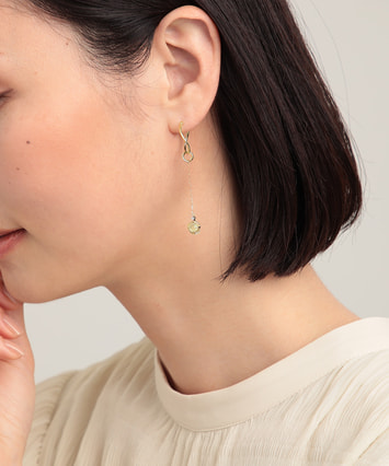 生命力に満ちた清々しい色彩に包まれ、身につけるだけで笑顔があふれるカラーストーンシリーズ。つややかなカボションカットのプレーナイトをゴールドのチェーンと組み合わせ、上品でシックな佇まいに仕立てたピアスチャーム。お持ちのピアスに合わせることで自在なアレンジが可能なアイテムです。新緑にきらめくしずくのような潤いに満ちたプレーナイトは、「健康的な美しさ」という石言葉を持ち、身に着ける人の心身を穏やかにしてくれそうな爽やかなグリーンが魅力。春らしいリラックスムードに包まれながら、「わたし」だけのコーディネートをお楽しみください。■同シリーズのアイテムはこちら■着用イメージでコーディネートしたフープピアスはこちら※天然石を使用しているため、ストーンの色や柄は一つ一つ異なる場合がございます。※全国のフェスタリア系列店舗にてクリーニングやアフターメンテナンスを承ります。